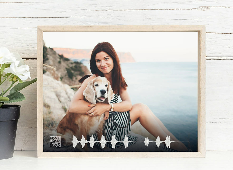 At Sound Wave Memorials, we understand how deeply pets touch our hearts. We create personalised memorial websites and beautifully crafted frames featuring a photo, printed sound wave and a QR code that links straight to your pet’s digital tribute. It’s a way to keep their story alive - not just for you, but for everyone who loved them.